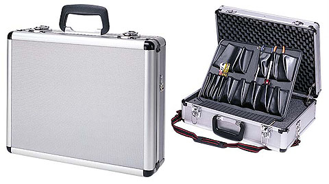 THIS IS A GENERAL PURPOSE ALUMINUM PISTOL AND HANDGUN CASE WITH A TOOL PALLET.