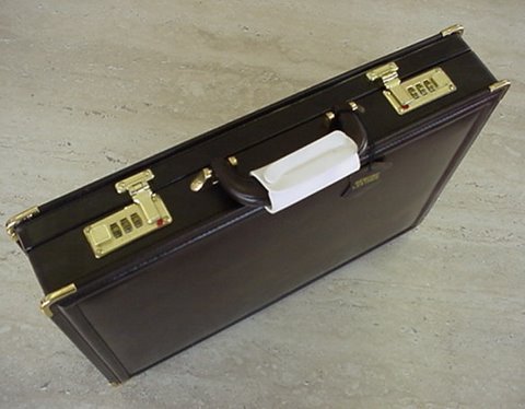 A top grain cowhide leather brown attache with a sueded pigskin lining interior. Three file pockets, pen loops, card pockets and trimmed in top grain leather.