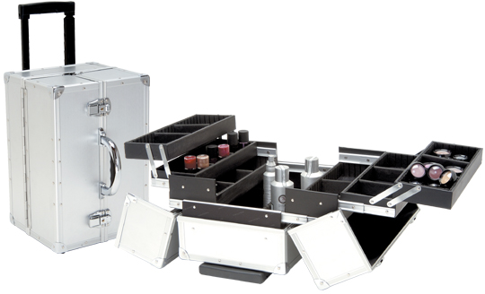 A professional beauty case with deep well trays and movable dividers.