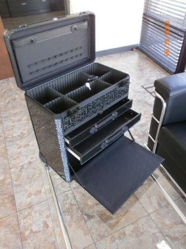 ALUMINUM BEAUTY CASE COSMETIC VANITY MAKEUP SALON ROLLING COMPUT